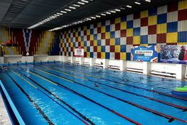 Длина бассейна 50 метров, ширина 21 метр, максимальная глубина 5 м 50 см, минимальная 180 см.